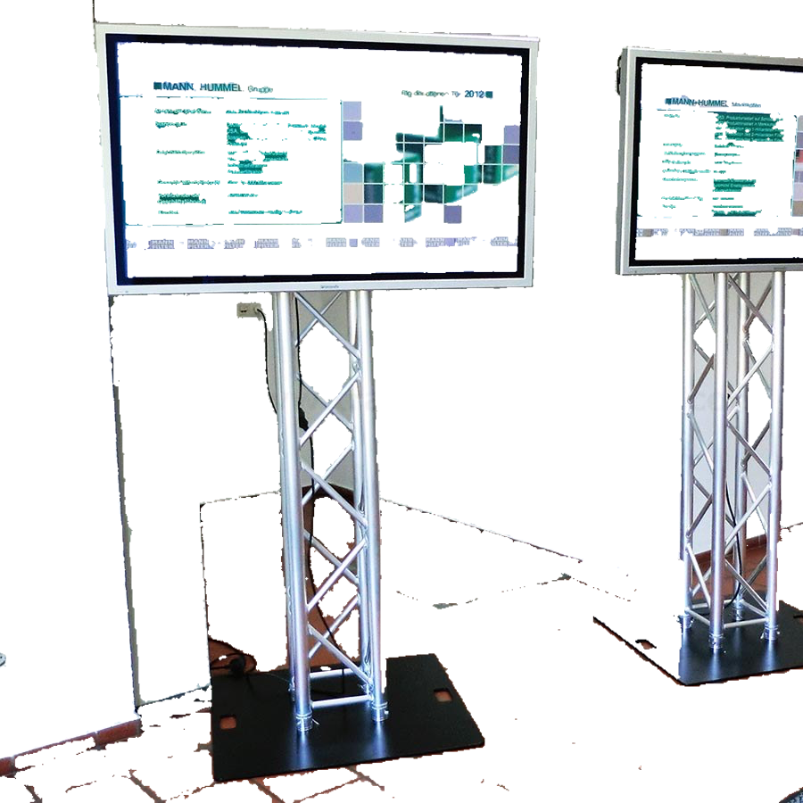 TV Tover mit Bodenplatte 2m traverse und 65 Zoll TV